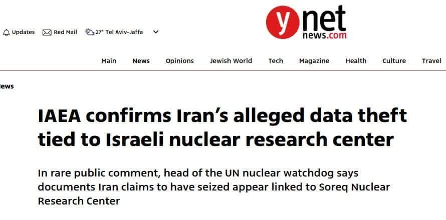 یدیعوت احرونوت نوشت: در یک اظهار نظر عمومی نادر، رئیس دیدهبان هستهای سازمان ملل متحد میگوید اسنادی که ایران ادعا میکند به دست آورده، ظاهراً مربوط به مرکز تحقیقات هستهای سورک است.