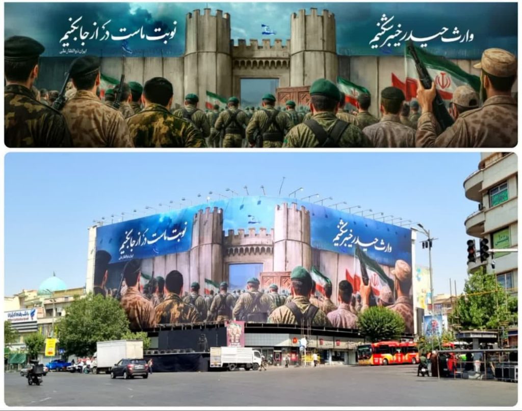 طرح جالب دیوارنگاره میدان انقلاب همزمان با حملات پی در پی موشکی ایران به اراضی اشغالی