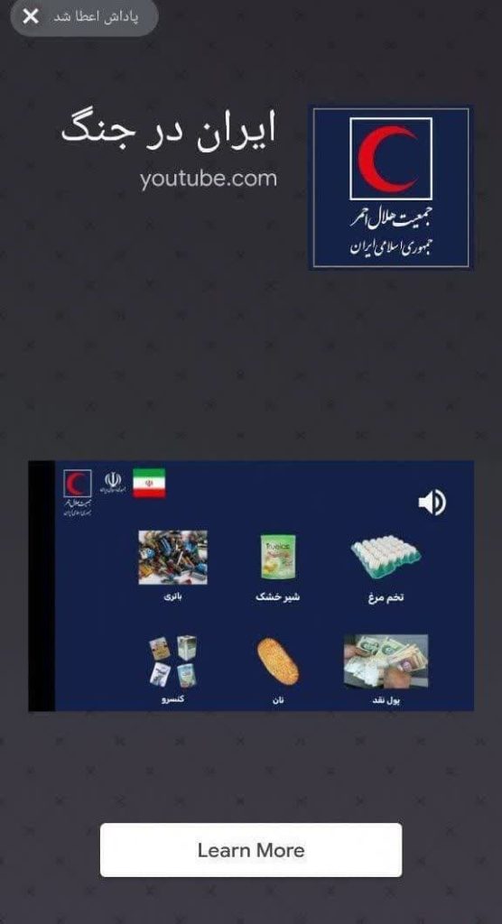 تبلیغات عناصر فارسی زبان موساد در اپلیکیشنهای موبایلی برای تشویق مردم به خرید و انبار کردن مایحتاج به منظور کاهش منابع کشور با آرم هلال احمر!