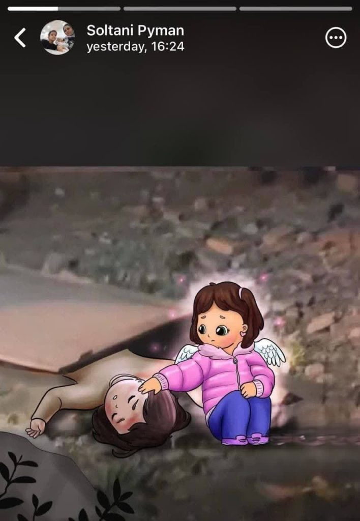 پیمان سلطانی نژاد پدر ریحانه سلطانی نژاد ( دختر شهید ۱۸ ماهه کاپشن صورتی که در حادثه تروریستی ۱۳ دی ماه ۱۴۰۲ کرمان به شهادت رسیده بود) با گذاشتن این استوری با خانواده های کودکان شهید در اثر جنایات اخیر رژیم صهیونیستی ابراز همدردی کرد.
