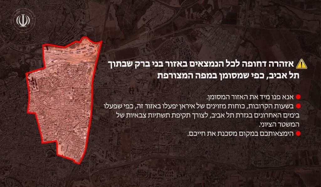 🔹طی ساعات آینده نيرو هاى مسلح ايران در این ناحیه همچنان که طی روزهای اخیر در محدوده تل اويو عمل نموده است، برای حمله به زیرساختهای نظامی رژیم صهيونيستی وارد عمل خواهد شد.
