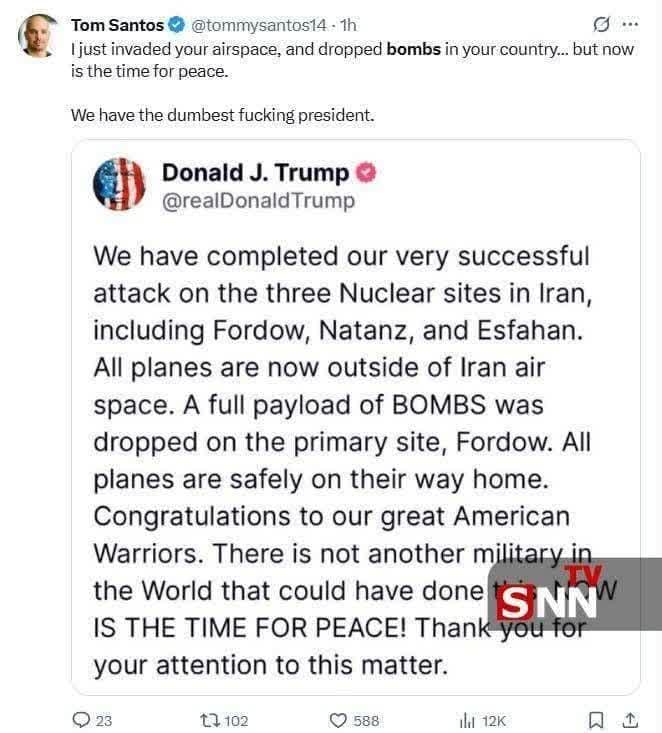 واکنش کاربر آمریکایی به حمله ترامپ به تاسیسات هسته ای ایران: