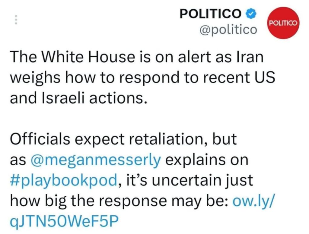 پولیتیکو اضافه کرد: مقامها انتظار تلافی را دارند، اما هنوز مشخص نیست که این واکنش تا چه اندازه گسترده خواهد بود.