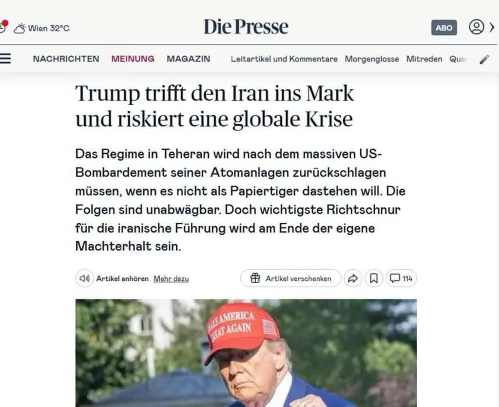 🔹 روزنامه “دیپرسه” اتریش در مطلبی نوشت که دو منبع قدرت در ایران وجود دارد ” یکی خواست راسخ ایرانیان برای استقلال ملی و دیگری فرهنگ عمیق ایثار که در تشیع ریشه دارد.”