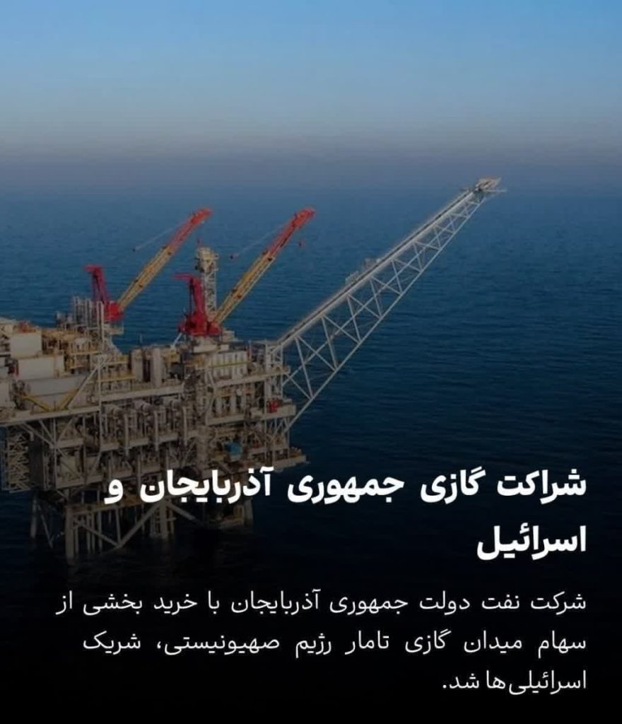 🔹اسرائیلیها برای شریک کردن جمهوری آذربایجان در ۱۰ درصد میدان گازی تامار، یک میلیارد و ۲۵۰ میلیون دلار از آذربایجان پول گرفتهاند.