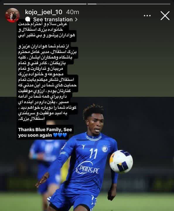 🔹️کوجو پس از قطعی شدن جدایی اش از این تیم با انتشار متنی از هواداران استقلال خداحافظی کرد.