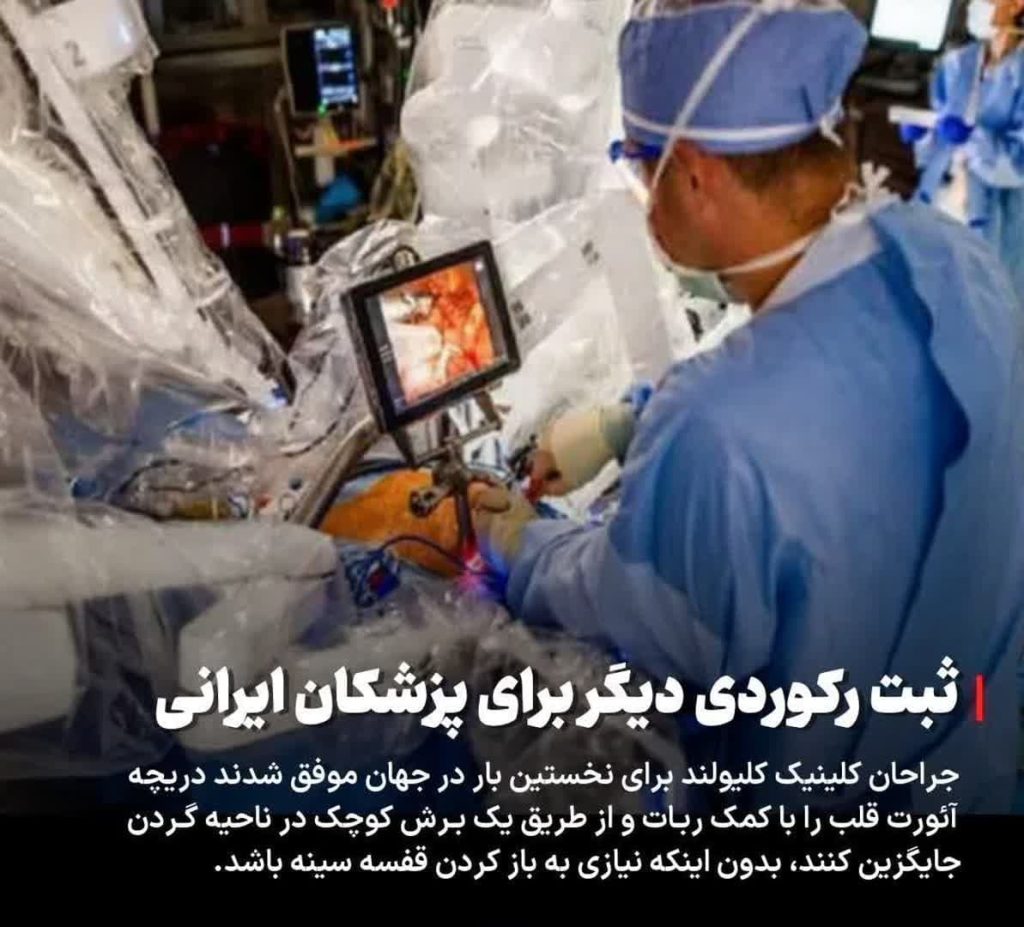 🔹جراحان کلینیک کلیولند برای نخستین بار در جهان موفق شدند دریچه آئورت قلب را با کمک ربات و از طریق یک برش کوچک در ناحیه گردن جایگزین کنند، بدون اینکه نیازی به باز کردن قفسه سینه باشد.