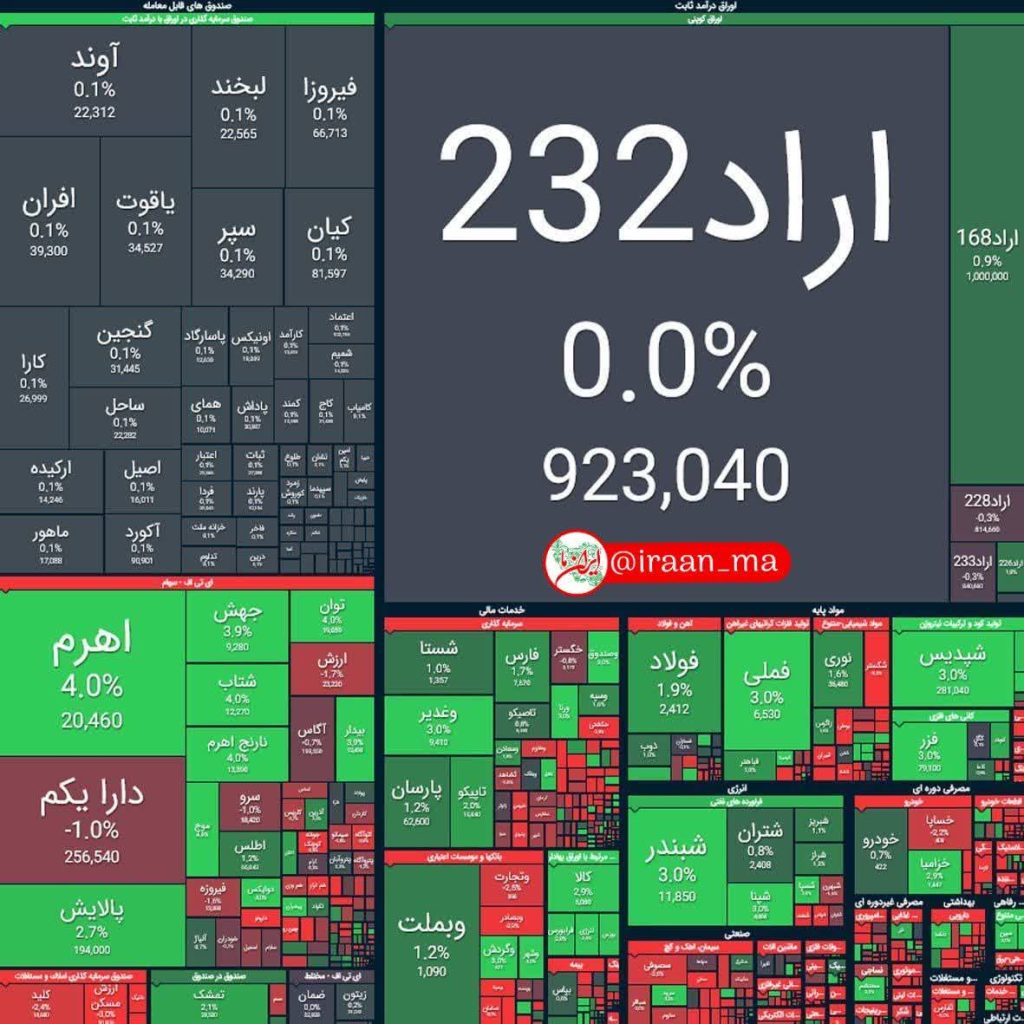 🔹شاخص کل بورس با صعود ۳۴ هزار واحدی در پایان معاملات امروز به ۲ میلیون و ۷۳۵ هزار واحد رسید.