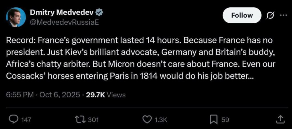 🔹دیمیتری مدودف، معاون رئیس شورای امنیت روسیه گفت:
