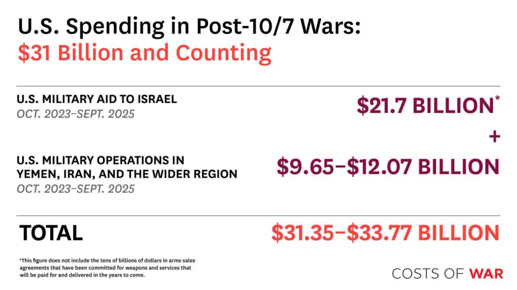 🔹دانشگاه براون: آمریکا پس از ۷ اکتبر ۲۱ میلیارد دلار به اسرائیل کمک نظامی کرده است و مجموع هزینههای عملیاتهای آمریکا در یمن، ایران و دیگر مناطق خاورمیانه حدود ۱۲ میلیارد دلار بوده است.
