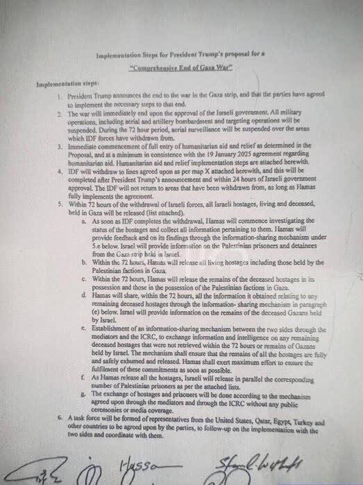 🔹شبکه روسیه الیوم به نقل از شبکه ۱۱ رژیم صهیونیستی تصریح کرد بر اساس این توافق، طرفین متعهد شدهاند که با آزاد کردن همه اسرا، عملیات نظامی را متوقف و مرحلهای انتقالی را در نوار غزه آغاز کنند.