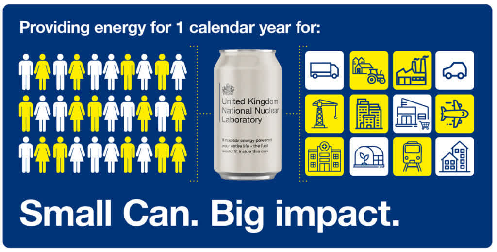 🔹بنابراین، یک قوطی کوچک از قرصهای سوخت هستهای میتواند مصرف انرژی یک سال کامل بیش از ۳۰ نفر را تأمین کند. قوطی کوچک، تأثیر بزرگ.
