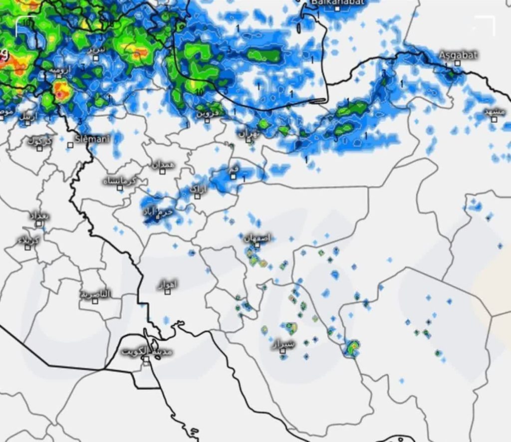 🔹بااینحال بررسی راداری بارش کشور در ۷ روز گذشته نشان میدهد که بسیاری از نواحی شمال غربی ایران پذیرای باران بودهاند.