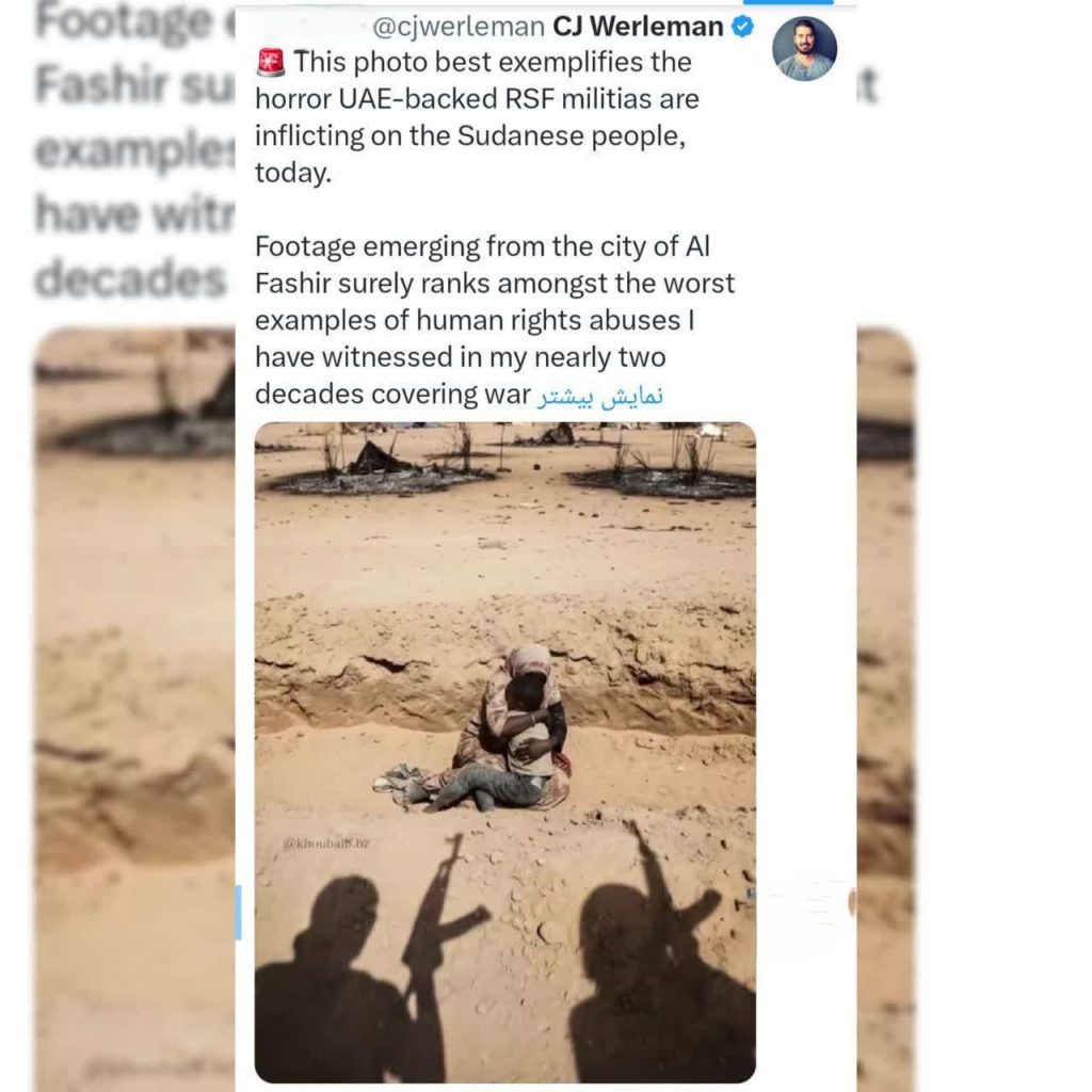 🔹 این عکس، بهترین نمونه از وحشتی است که شبهنظامیان RSF، تحت حمایت امارات متحده عربی، امروز بر مردم سودان تحمیل میکنند.