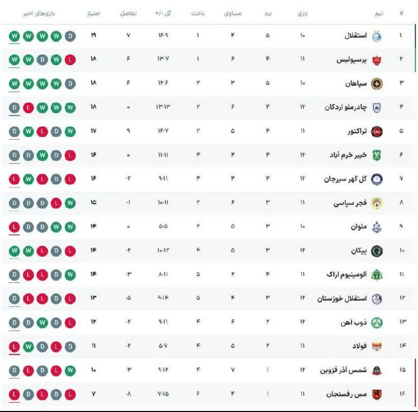 نتایج روز نخست هفته دوازدهم:
