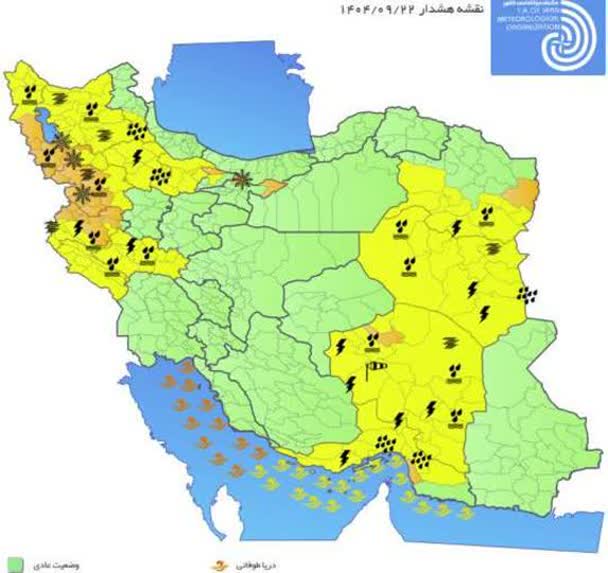 🔹این هشدار امروز برای آذربایجان غربی، شمال کرمانشاه، غرب کردستان، جنوب هرمزگان، ارتفاعات البرز و شمال غرب تهران صادر شده.
