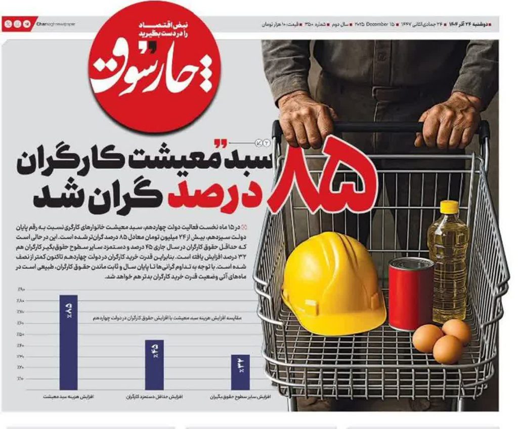 🔹در ۱۵ ماه نخست فعالیت دولت چهاردهم، سبد معیشت خانوارهای کارگری نسبت به رقم پایان دولت سیزدهم، بیش از ۲۴ میلیون تومان معادل ۸۵ درصد گرانتر شده است.