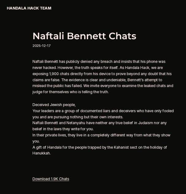 🔹گروه سایبری حنظله: نفتالی بنت بهطور علنی هرگونه نفوذ را انکار کرده و اصرار دارد که تلفن همراهش هرگز هک نشده است.