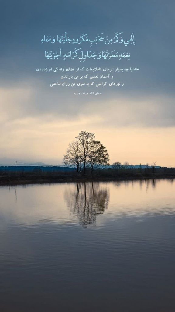 ✨ خدایا! چه بسيار ابرهاى مصيبتبارى كه از من برطرف نمودى و ابرهاى نعمت افزايى كه بر من باراندى و جوىهاى رحمتى كه روان نمودى و (جامههاى)تندرستىاى كه(بر من)پوشاندى و چشمهاى مصيبتآفرينى كه كور گرداندى و پردههاى اندوه كه برداشتى