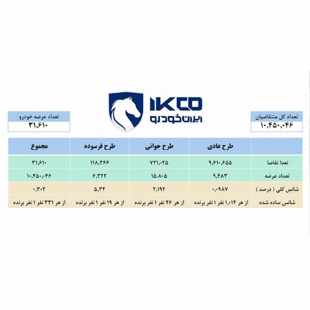 🔹البته باتوجه به اینکه عمدۀ متقاضیان در بخش طرح فروش عادی هستند؛ احتمال برندهشدن افراد متقاضی طرح عادی برابر ۰.۰۹ درصد است؛ یعنی از هر ۱۰۱۴ نفر یک نفر!