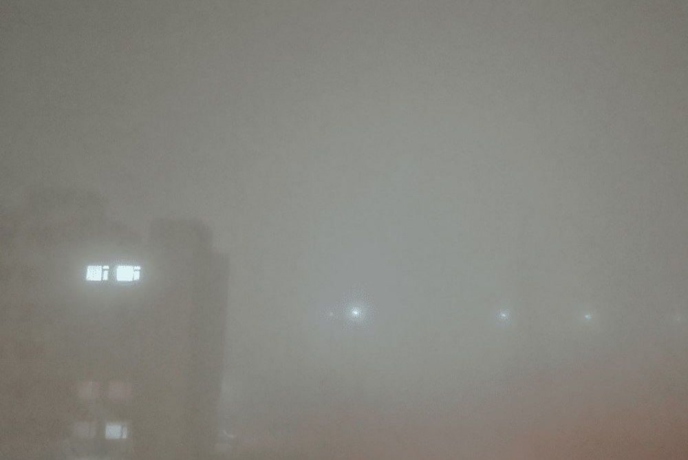 🔹همزمانی آلودگی و مه بسیار غلیظ موجب شکلگیری مه دود و کاهش بسیار شدید دید افقی شده است.