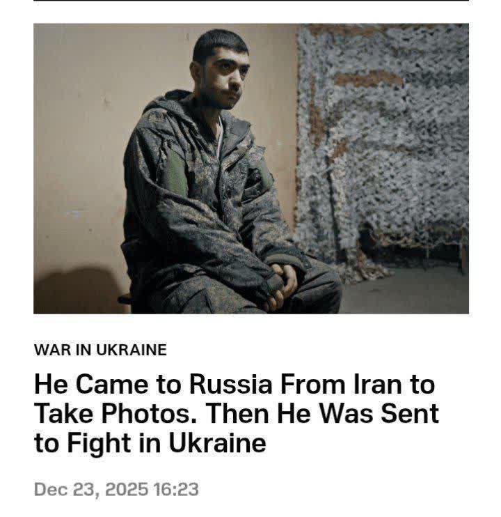 🔹آرش داربندی، عکاس ۳۴ ساله اهل اهواز که با ویزای توریستی برای کار عکاسی به سنپترزبورگ روسیه سفر کرده بود وارد سرویس نظامی روسیه و معرکه جنگ با اوکراین شد.