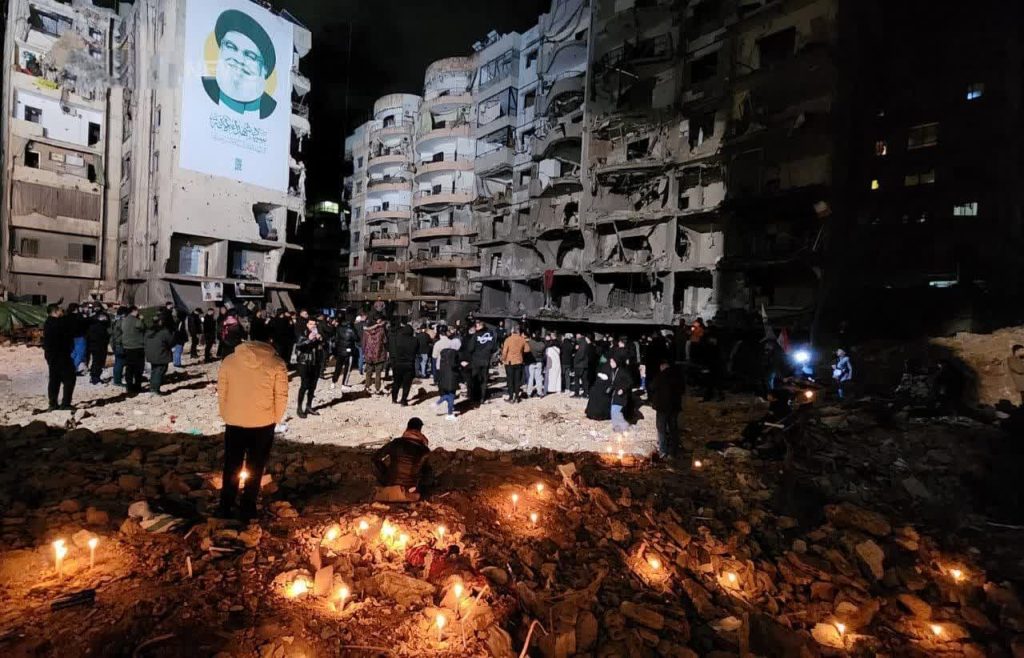 🔹آنها با حضور در محل شهادت سید حسن نصرالله با روشن کردن شمع و سینه زنی به عزاداری پرداختند.