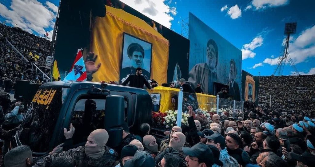 شبکه المیادین لبنان گزارش داد که صدها هزار نفر در مراسم تشییع پیکرهای رهبران شهید حزب الله شرکت کرده و بنا به براورها و تخمینها، یک میلیون و چهارصد هزار نفر در این مراسم شرکت کردهاند.