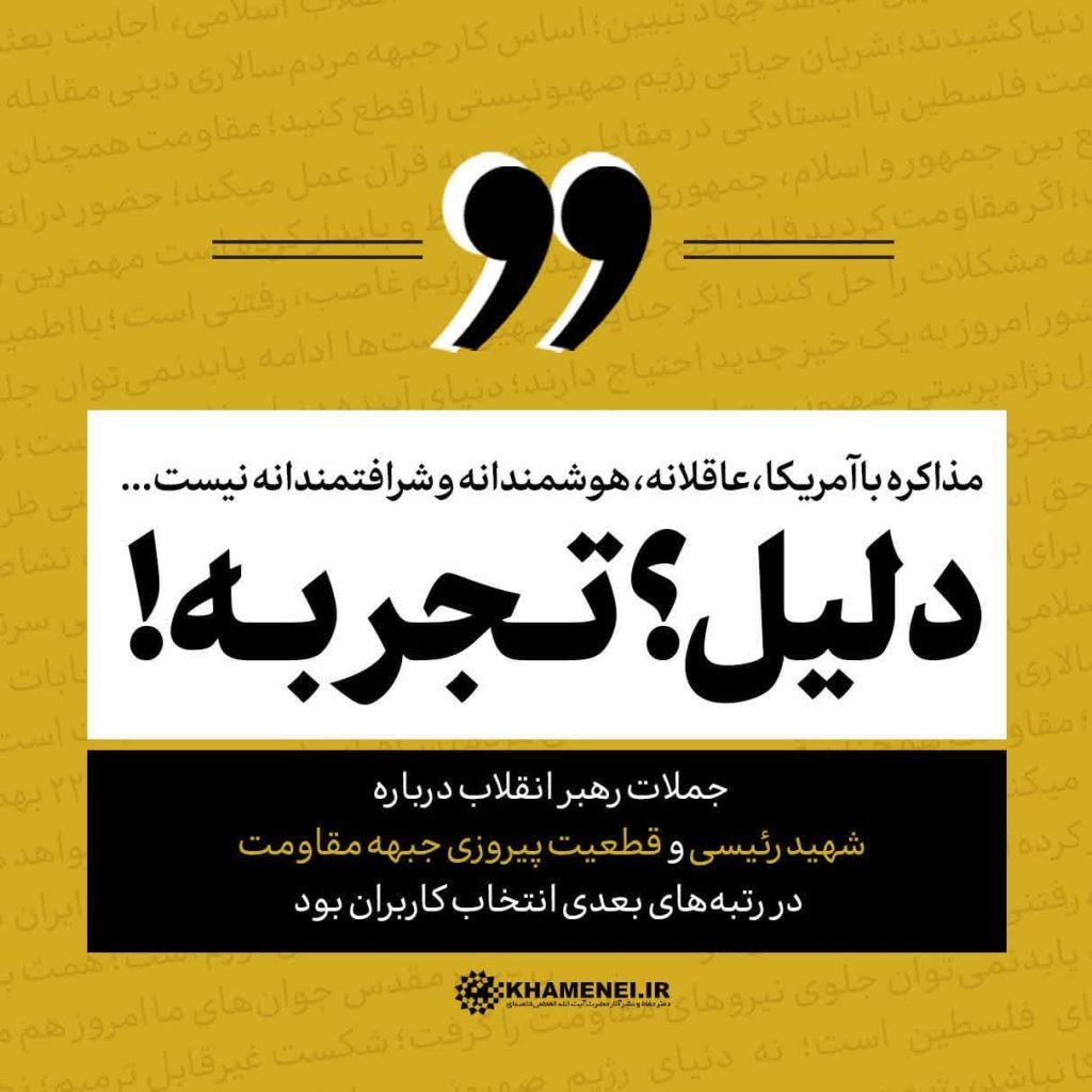 «از مذاکرهٔ با آمریکا هیچ مشکلی حل نمیشود؛ دلیل؟ تجربه!» این جملهٔ رهبر انقلاب در دیدار فرماندهان نیروی هوایی ارتش ازسوی مردم بهعنوان مهمترین جملهٔ سال ۱۴۰۳ رهبر انقلاب انتخاب شد.