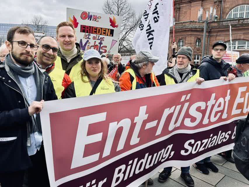 همزمان با افزایش نگرانیها درباره تنشهای نظامی در اروپا، حدود ۲۵۰۰ نفر در شهر ویسبادن آلمان علیه استقرار موشکهای میانبرد آمریکا و برنامههای تسلیحاتی جدید در خاک آلمان تظاهرات کردند.