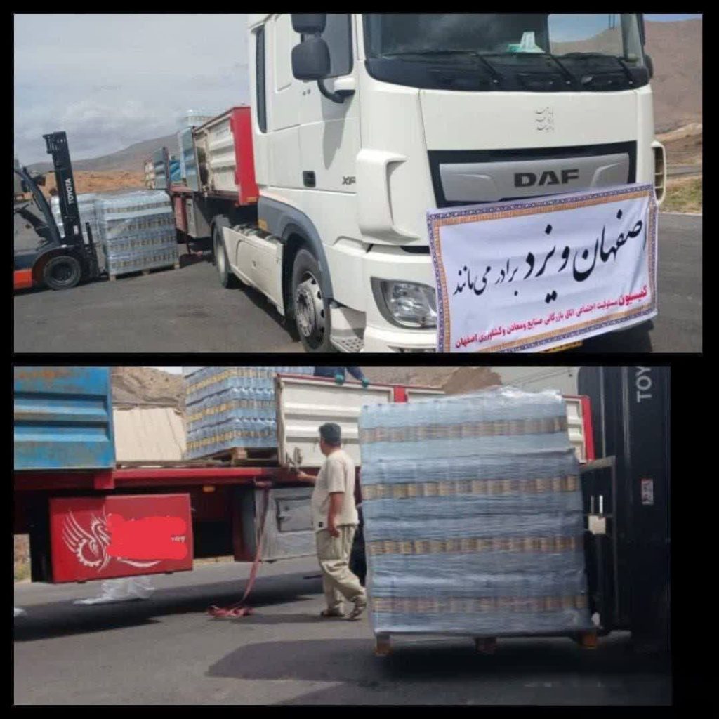 ارسال محموله آب معدنی از سوی اتاق بازرگانی اصفهان با پیام زیبای «اصفهان و یزد برادر میمانند»