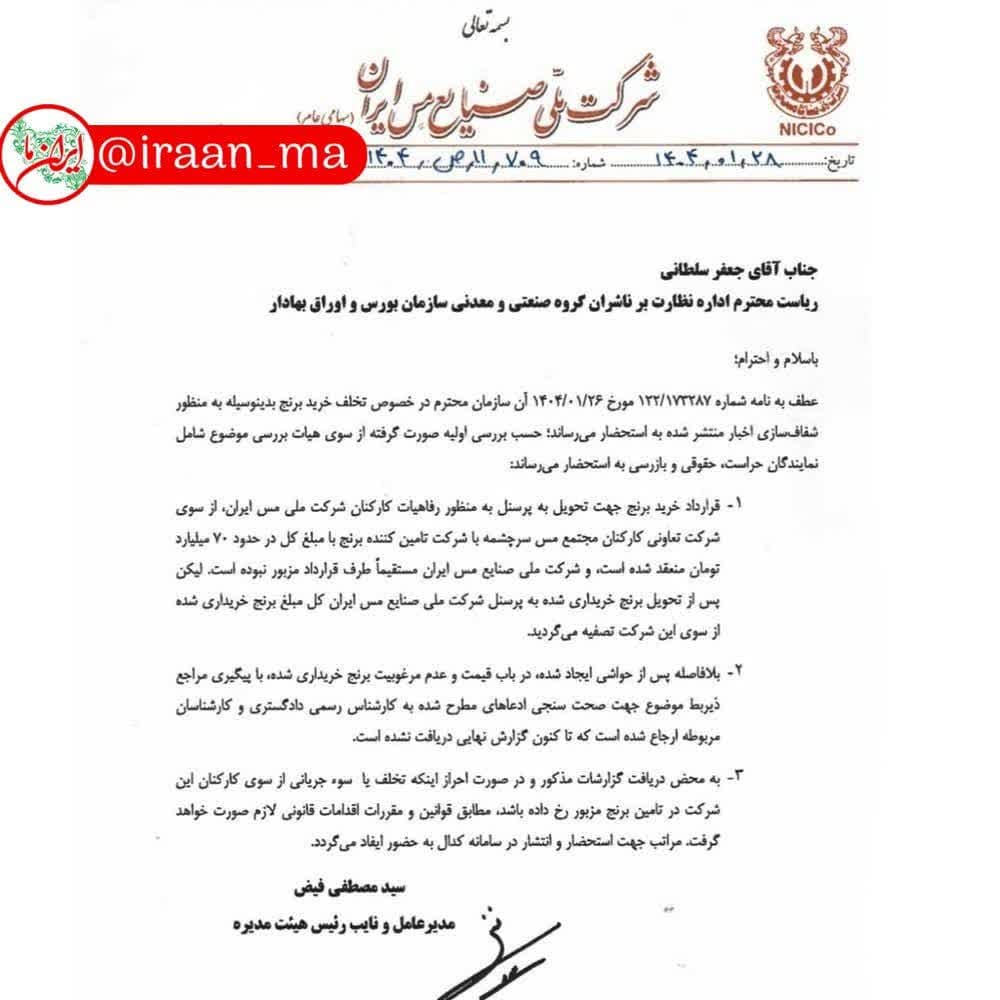 🔹مدیرعامل شرکت ملی مس ایران در نامهای به سازمان بورس توضیح داد که خرید برنج به مبلغ ۷۰ میلیارد تومان برای رفاه کارکنان این شرکت از سوی تعاونی کارکنان مجتمع مس سرچشمه انجام شده و این شرکت مستقیماً طرف قرارداد نبوده است.