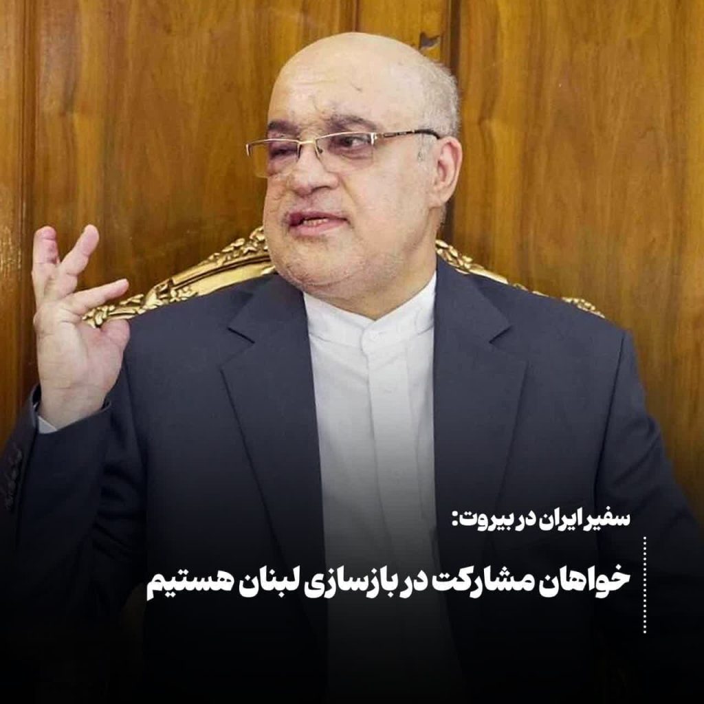 🔹سفیر جمهوری اسلامی ایران در بیروت با اشاره به آسیب های وارده به مردم لبنان در پی تجاوزهای رژیم صهیونیستی گفت که ایران تلاش می کند برای بازسازی لبنان با دولت این کشور همکاری کند.