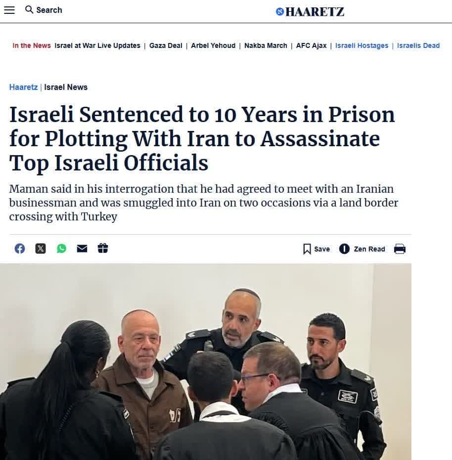 🔹 دادگاهی در اسرائیل روز سهشنبه یک شهروند ۷۲ ساله اسرائیلی را به اتهام توطئه با ایران برای پیگیری ترور مقامات عالیرتبه اسرائیلی به ۱۰ سال زندان محکوم کرد.