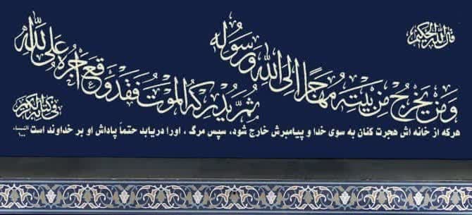 🔹ومَنْ يَخْرُجْ مِنْ بَيْتِهِ مُهَاجِرًا إِلَى اللَّهِ وَرَسُولِهِ ثُمَّ يُدْرِكْهُ الْمَوْتُ فَقَدْ وَقَعَ أَجْرُهُ عَلَى اللَّهِ (نساء/۱۰۰)