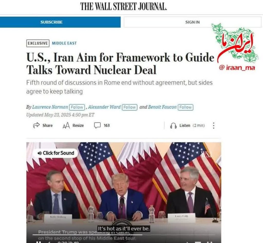 🔹 دور پنجم مذاکرات در رم بدون توافق پایان یافت، اما طرفین توافق کردند که به گفتگو ادامه دهند.